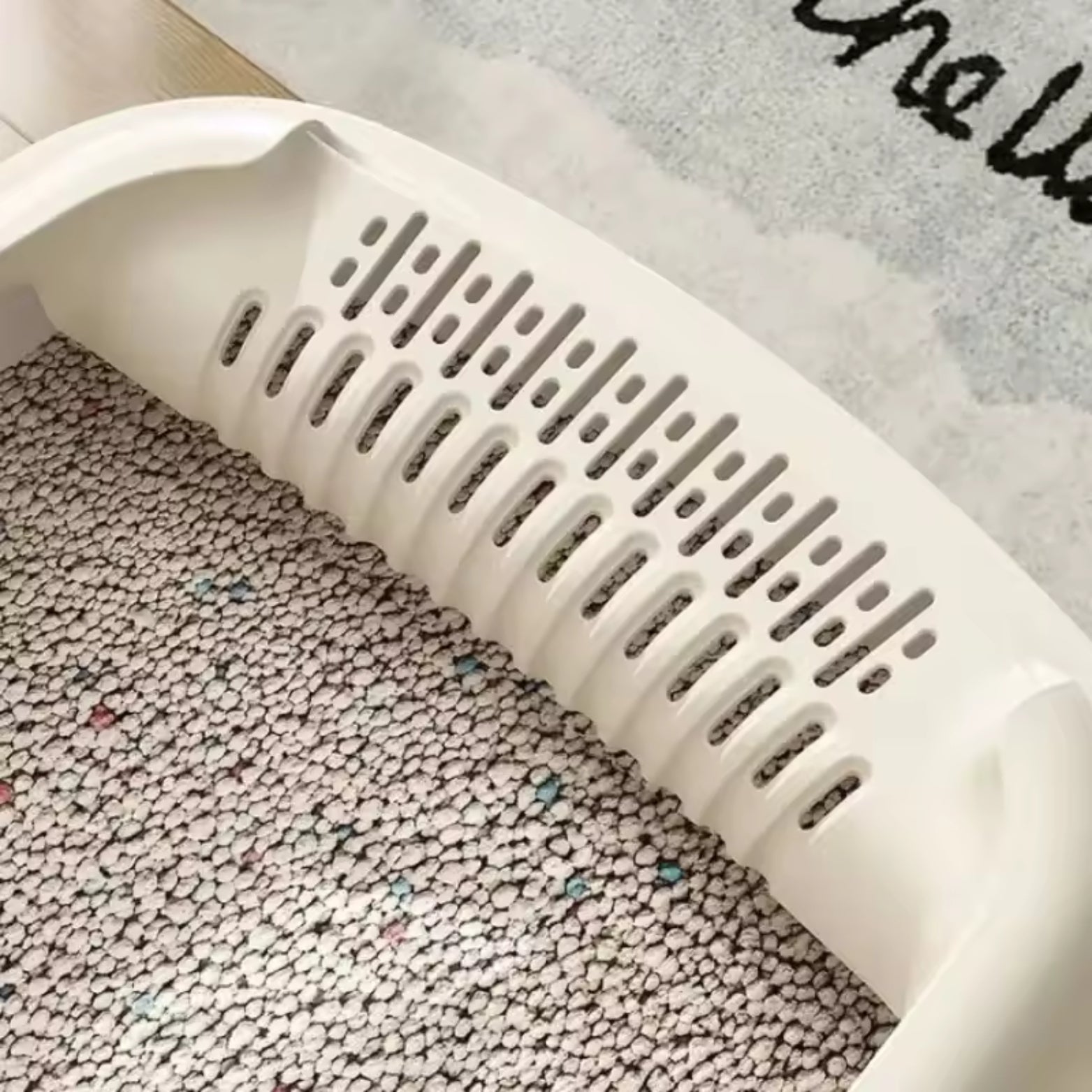 Les rebords hauts empêchent les projections de litière et maintiennent votre sol propre. Fini les grains éparpillés partout autour de la zone toilette.